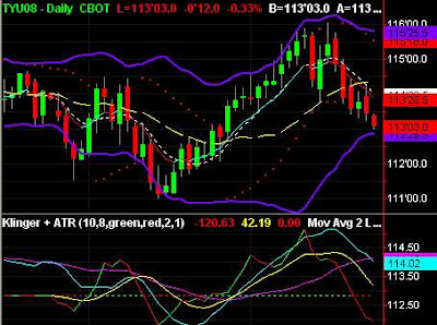 I wish I could say I had taken the short crude oil trade last week, but I didn't. However, I shorted this morning when Hurricane Dolly showed clearly that it wouldn't impact the oil platforms. Like the grains, I consider this to be a correction rather than a downtrend. In a correction, I keep a very tight stop and am prepared at all times to reverse direction on a dime.Personally, I am glad to see the price of crude oil plunge, because I know that it will tighten the economic noose on tyrants like Mahmoud Ahmadinejad of Iran and Hugo Chavez of Venezuela. A crude oil market collapse could be just what's needed to bring these guys to their knees. Chavez has so devastated the economic vitality of Venezuela that he has resorted to begging from the very groups that he targeted so brutally with his confiscations and price controls. Good riddance to the Castro of the Continent in South America. The sooner, the better.